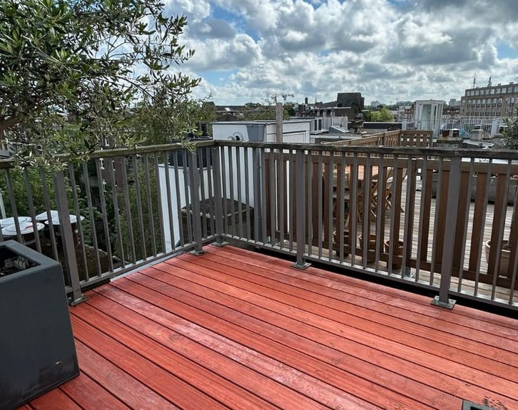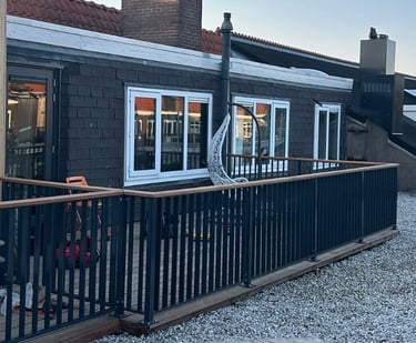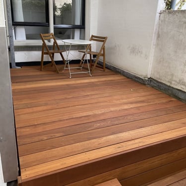 Heel blij met de snelle en nauwkeurige houten afwerking van ons balkon en de bijbehorende binnenmuren door de mannen van Dakterras Expert. Het balkon past nu perfect bij de rest van ons huis, prachtig bekleed met Padouk! De afwerking is tot in detail verzorgd en het resultaat mag er echt zijn. De volgende stap wordt de afwerking van het balkonplafond met Padouk. We kijken er nu al naar uit!
