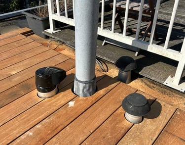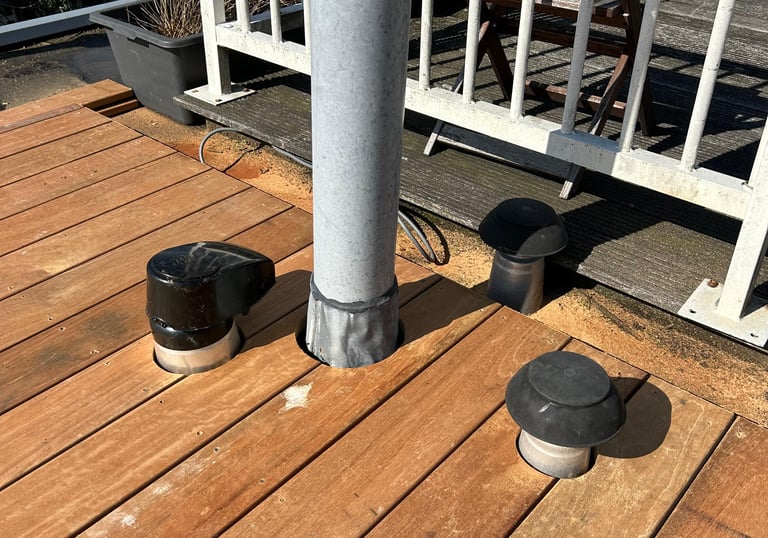 Ook ontluchtingssystemen van onderliggende ruimtes kunnen op het dakterras uitkomen. Om hinderlijke geuren te voorkomen, kunnen deze worden uitgerust met speciale filters die geur neutraliseren zonder de ventilatie te belemmeren.